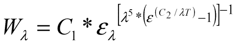 이 방정식은 파장, 온도 T 및 복사 전력 사이의 관계를 설명합니다.